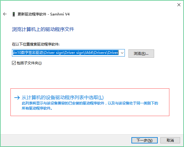 7)选择下面的“从计算机的设备驱动程序列表中选取(L)”;