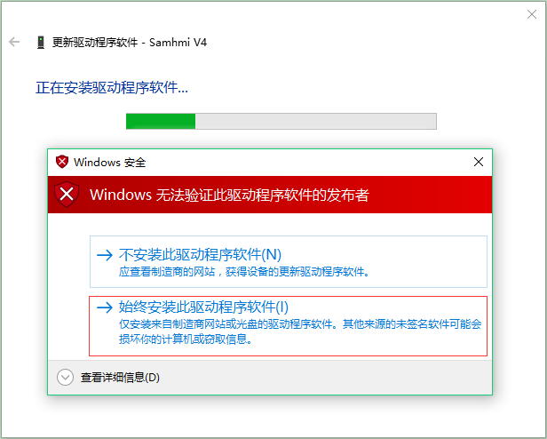 此处有必要稍作解释,这里并不是因为驱动有病毒,而是windows系统无法验证发布者而发出的警告,本驱动文件是由显控研发工程师专门开发的,打包之前已经查杀过病毒,请放心使用!