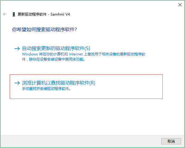 6)选择第二条“浏览计算机以查找驱动程序软件”;